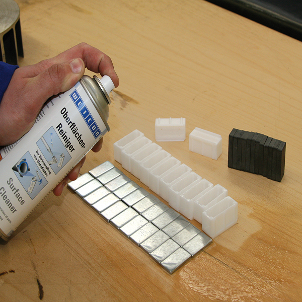 WEICON Surface Cleaner jest przeznaczony do czyszczenia i odtłuszczania powierzchni przed klejeniem lub uszczelnianiem za pomocą produktów WEICON. WEICON Surface Cleaner może być stosowany na metalach, szkle, ceramice jak i większości tworzyw. Surface Cleaner z powodzeniem może być wykorzystywany jako zmywacz przy pracach naprawczych i serwisowych.