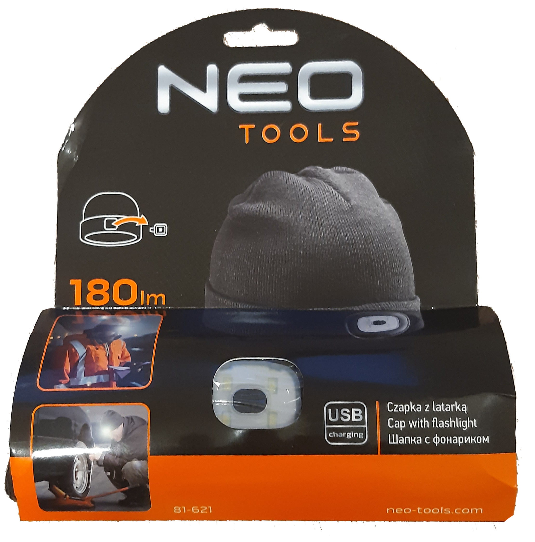 Czapka z latarką NEO zapewnia światło podczas pracy pozostawiając wolne ręce. Wyposażona w mocne światło LED'owe daje możliwość regulacji natężenia mocy światła na trzech różnych poziomach (100%, 75%, 50%). Latarka odporna jest na rozbryzgi wody. Ładowanie przez USB umożliwia szybkie i łatwe naładowanie baterii.
