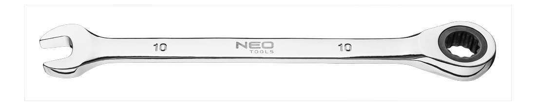72-zębowa grzechotka w kluczu oczkowym zapewnia szybką i precyzyjną pracę. Wysokogatunkowa stal chromowo-wanadowa gwarantuje długoletnią wytrzymałość. Gwarantem wysokiej jakości i niezawodności produktu jest certyfikat TÜV Rheinland. Marka NEO spełnia oczekiwania profesjonalistów.