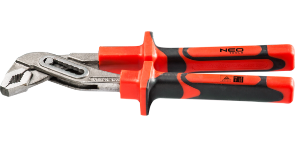 Szczypce do rur 1000 V NEO o wymiarze 250 mm, z nastawnym przegubem ślizgowym. Atestowane do pracy pod napięciem do 1000 V. Wysokogatunkowa stal chromowo-wanadowa zapewnia długoletnią wytrzymałość szczypiec. Dwumateriałowa, ergonomiczna rękojeść podnosi komfort użytkowania. Niezawodność produktu potwierdza 25-letnia gwarancja. Marka NEO spełnia oczekiwania profesjonalistów.