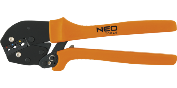 Szczypce do zaciskania końcówek konektorowych NEO o długości 250 mm. Kody kolorystyczne ułatwiają wybór średnicy końcówki. Do końcówek w zakresie 22-10 AWG. Twardość szczęk zaciskających 48-52 HRC. Uchwyt pokryty wysokiej jakości tworzywem TPR podnosi komfort pracy. Jakość narzędzia potwierdzona certyfikatem TÜV i 25-letnią gwarancją producenta. Marka NEO spełnia oczekiwania profesjonalistów.