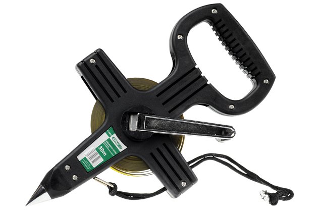 taśma miernicza stalowa 50m STALCO S-10850 obudowa z tworzywa odpornego na uderzenia składana korbka taśma zakończona metalowym zaczepem