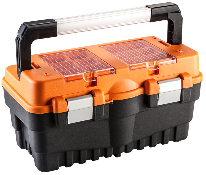 Skrzynka narzędziowa NEO to praktyczna i solidna skrzynka narzędziowa wykonana z wytrzymałego tworzywa sztucznego z aluminiowymi zapięciami.