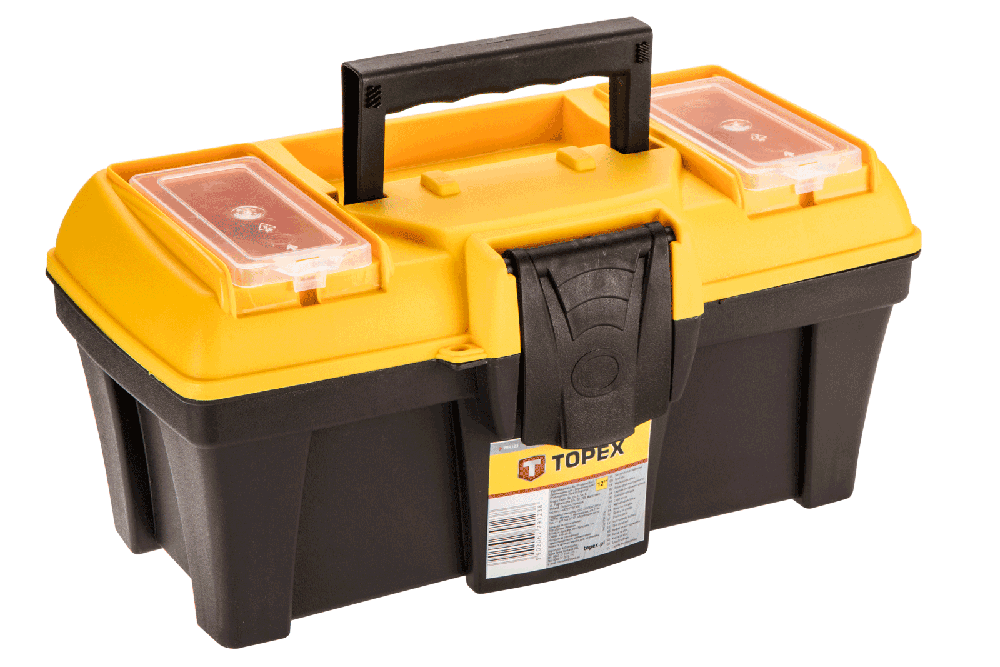 Skrzynka narzędziowa TOPEX to lekka i praktyczna skrzynka narzędziowa wykonana z odpornego tworzywa sztucznego. Posiada 2 praktyczne organizery do przechowywania drobnych elementów i wygodny uchwyt do przenoszenia. Marka TOPEX skierowana jest do majsterkowiczów.