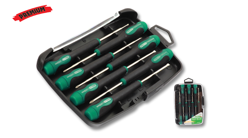 Wkrętaki precyzyjne zestaw 7elementowy stalco S-12406     bimateriałowa obrotowa rękojeść     końcówka płaska 1,5 x 50mm, 2,0 x 50mm, 2,5 x 50mm, 3,0 x 50mm     końcówka PH 000 x 50mm, PH 00 x 50mm, PH 0 x 50mm