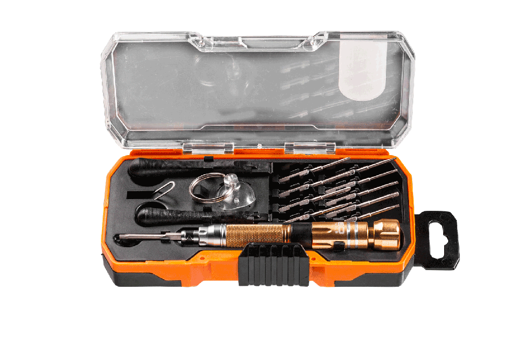 Podstawowy zestaw narzędzi serwisowych dla branży elektrotechnicznej i GSM do napraw i technicznej konserwacji telefonów, smartfonów, tabletów.