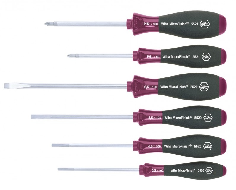 Wkrętak zestaw MicroFinish, wkrętki wiha, śrubokręty wiha, zestawy śrubokrętów wiha, wkrętak płaski wiha, zestawy wkrętaków, wkrętak płaski, wiha tanio, wiha 5520 HK6, wiha 29142, wkrętaki do zastosowań w wilgotnym i oleistym środowisku.