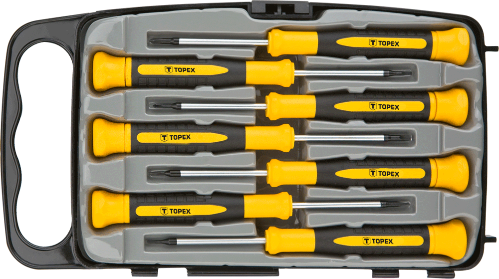 Zestaw wkrętaków precyzyjnych TOPEX to bardzo przydatny komplet przy pracach mechanicznych oraz podczas majsterkowania. Grot każdego z siedmiu wkrętaków wykonany z wytrzymałej stali chromowo-wanadowej, zapewniającej długą żywotność narzędzi. Magnetyczna końcówka z hartowanej stali ułatwia pracę narzędziem. Ergonomiczny uchwyt z tworzywa sztucznego pokryty antypoślizgowym materiałem zapewnia komfort i bezpieczeństwo podczas pracy. Praktyczne opakowanie ułatwia przechowywanie i transport.