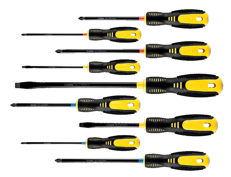 Zestaw wkrętaków TOPEX bardzo przydatny przy pracach mechanicznych oraz podczas majsterkowania. Grot każdego z pięciu wkrętaków wykonany z wytrzymałej stali chromowo-wanadowej, zapewniającej długą żywotność narzędzi. Magnetyczna końcówka z hartowanej stali ułatwia pracę narzędziem. Ergonomiczny uchwyt z tworzywa sztucznego pokryty antypoślizgowym materiałem zapewnia komfort i bezpieczeństwo podczas pracy.