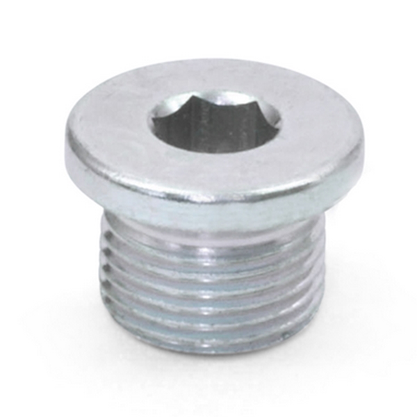 Złączka pneumatyczna - korek pneumatyczny wyposażony jest w łeb walcowy z otworem HEX oraz gwint cylindryczny zewnętrzny. Przeznaczony jest do zamykania elementów instalacji pneumatycznych. Połączenie elementów następuje poprzez wkręcenie złączki w inny element. Można go wykorzystać przy budowie instalacji hydraulicznej lub pneumatycznej.