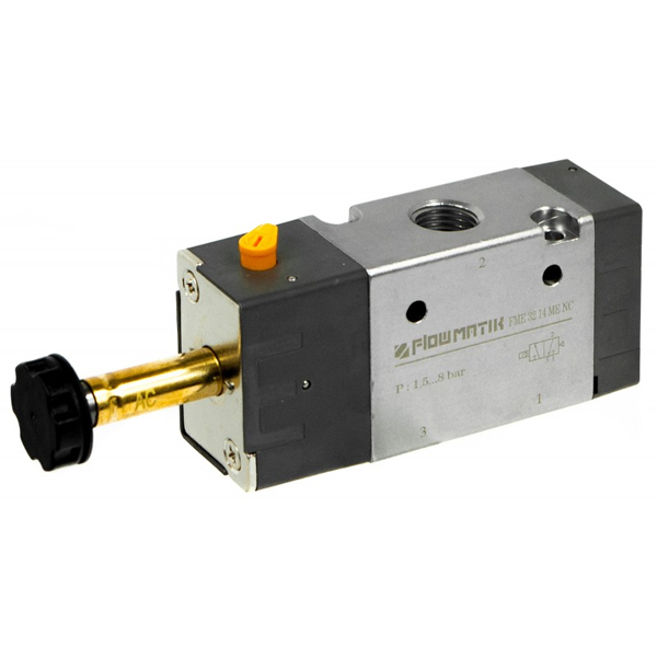 ELEKTROZAWÓR 3/2 NC FLOWMATIK FME 32 18 ME NC na gwint 1/8", powrót sprężyną